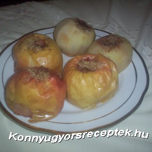A megmosott almák magházát eltávolítjuk, majd tetszés szerint hámozzuk vagy sem. Én csináltam így is, úgy is. A darált diót összekeverjük a fahéjjal és a vaníliás cukorral, majd előkészítjük az alufóliákat, amibe csomagoljuk a sütés előtt. Az almákat a fólia közepére helyezzük és először a dióval töltjük meg a magház üres helyét, végül az éppen otthon lévő lekvárból teszünk a tetejére. Ezután szépen összefogjuk a fólia széleit, csak úgy egyszerűen sütőedénybe tesszük a befóliázott almákat, és 200 fokos sütőben 15 percig sütjük, majd ezután kibontjuk a fólia tetejét, hogy a közben engedett levet még 5 percig sütve elpárologtassuk. Tányérra szedjük, a lehűtés után ajánlott a fogyasztása. Szeretném elmondani, hogy cukrot nem használtam, hisz a lekvár adott elegendő édességet. A végeredmény egy nagyon kellemes ízkombináció lesz. Nagyon jó kis étek még süti helyett is és akkor, amikor ”úgy ennék valami finomat”.