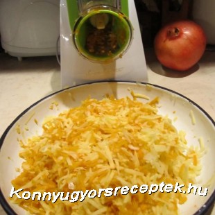 Szálasra reszelve adtam hozzá egy burgonyát és egy kis darab tököt, reszelt káposztát ,a lisztekkel, tojással sóval, borssal jól össze keverem.
