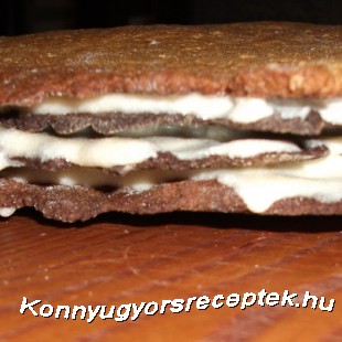 A lapokat egyenként megkenjük a krémmel. A mázhoz a porcukrot a tojásfehérjével és a citromlével jól kikeverjük, és ezzel kenjünk meg a tetejét.
