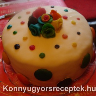 A tortát bevonjuk fondanttal, vagy marcipánnal, de a citromos krémmel is bevonhatjuk.Díszítjük.Én különböző színű rózsékkal díszítettem