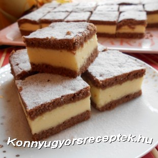 A tészta hozzávalóit összegyúrjuk és kétfelé vesszük. Az egyik tésztacipót kinyújtjuk, hogy beleférjen egy közepes tepsibe, rásimítjuk a krémet, majd befedjük a másik lappal.