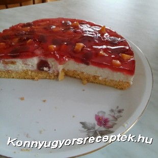 Ha kihűlt a piskóta, egy széles késsel kenjük rá a túrókrémet, és pakoljuk meg gyümölcsökkel. Végül a zselét készítsük el a zacskón lévő utasítás szerint, és öntsük le vele a tortát. Rakjuk hűtőbe, és legalább négy órán keresztül hagyjuk dermedni.