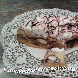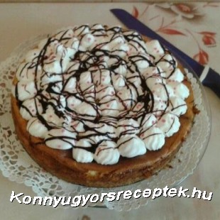 Majd a felvert tejszín habot habzsákba tesszük és feldíszítjük a tortát, meglocsoljuk csoki öntettel,és meg szórjuk dekor cukorral.