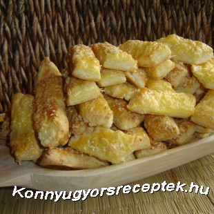 1.A szobahőmérsékletű margarint, sütőporral elkevert lisztet, túrót, tömlős sajtot, sót jól összedolgozzuk.