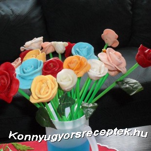 Lehet készen vett marcipánvirágokkal díszíteni.